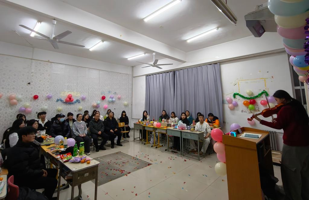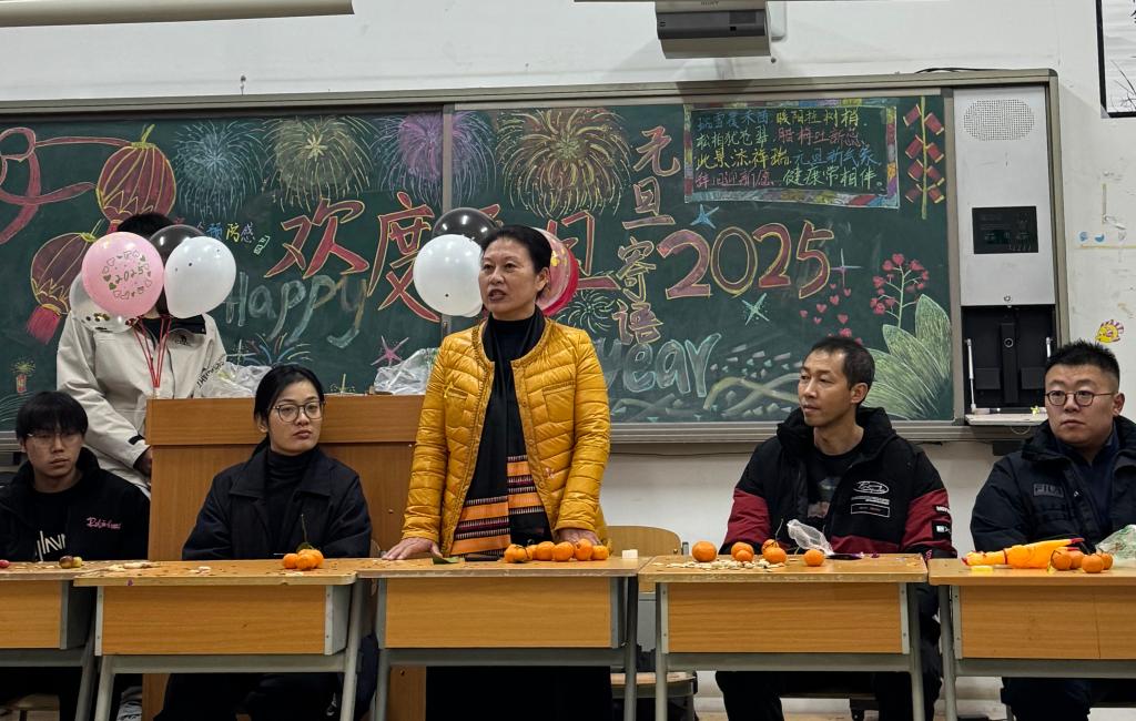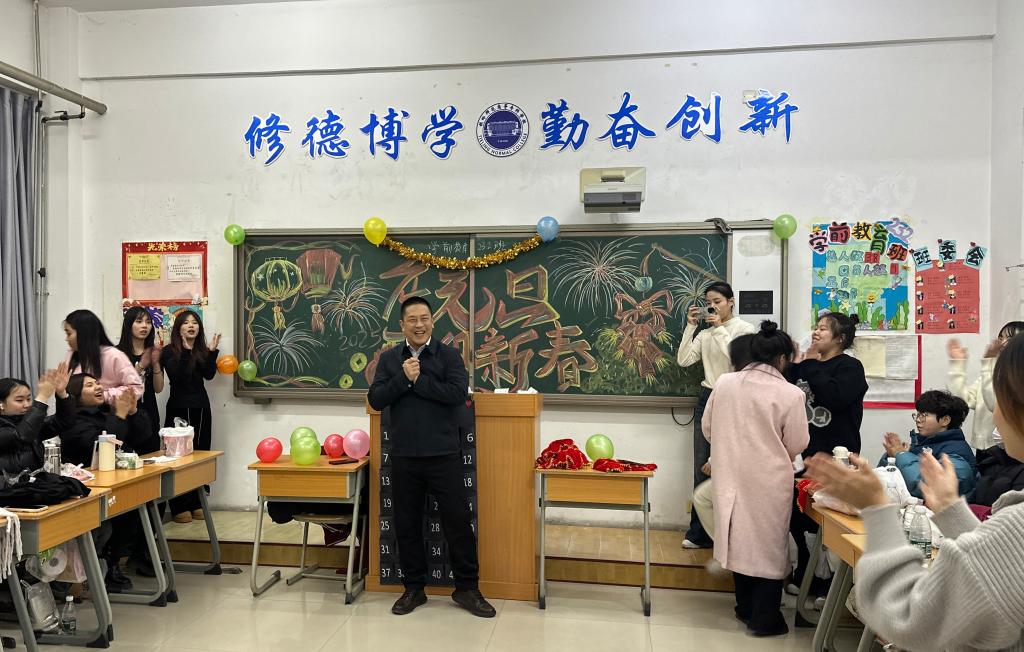 12月30日晚,2025年迎新年学生联欢会在学校各班级举行。党委副书记、校长张丽携党政班子成员与学校174个班,5719名在校生一起共迎新年。迎新年联欢会以班级为单位举行,同学们精心准备了歌曲、舞蹈、乐器演奏、相声、小品等节目,精彩纷呈,现场掌声不断,气氛热烈。