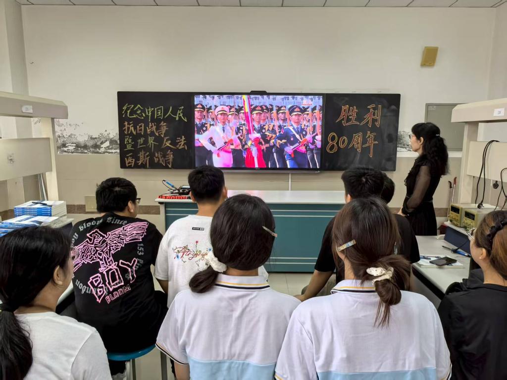 与此同时,全校上课班级均在教室有序组织收看活动。同学们端正就坐,全神贯注地盯着屏幕,沉浸于庄严隆重的纪念氛围中。直播结束后,许多学生依然心潮澎湃,立志要刻苦学习、锤炼本领,为实现中华民族伟大复兴贡献青春力量。