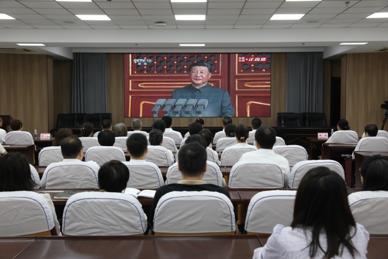 上午9时,学校领导班子成员与教师代表齐聚行政楼会议室,集体收看大会直播。与会教师全程神情专注、凝神聆听。听到动情处,许多人激动之情溢于言表。大家纷纷表示,要从伟大抗战精神中汲取理想信念的力量,牢记为党育人、为国育才的初心使命,把爱国之情、强国之志转化为投身教育事业的切实行动。