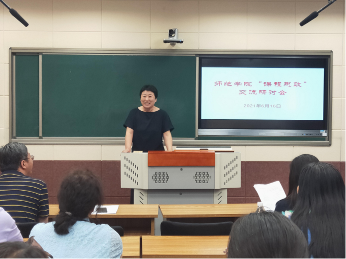 活动第四项,曹丽萍副校长讲话。作为学校课程思政创新团队负责人,她对师范学院课程思政活动的开展给予了高度认可,对张玉婷教师的这节公开课进行了专业点评。对课程思政的定位问题解答了教师的困惑,明确课程思政是隐形教育,要与思政课程的显性教育二者有机融合,起到润物细无声的作用。同时她对师范学院提出要求,要求做好课程思政的落实和推进工作,希望老教师做好经验的传承,年轻教师多学习,多研究,面对挑战时一如既往,践行初衷。